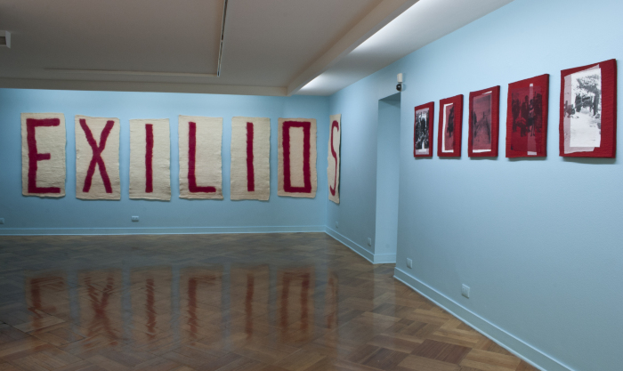 En la exposición “Sueño de una Noche de Verano” confluyen técnicas artísticas y artesanales, retomando los procedimientos del grabado para serigrafiar imágenes de cruces de fronteras sobre fieltros industriales, presenta también una serie de telas deshilachadas y zurcidas. Fabrica fieltros de gran formato manufacturados artesanalmente con vellón de oveja y realiza con ellos una acción filmada a orillas del lago Riñihue. Presenta también unos fieltros con frases que son parte de su trayectoria pictórica y dibuja con tiza algunas composiciones inspiradas en las correspondencias. En términos sociales en Chile, en el año 2011 se consolidan las protestas estudiantiles y comienza la crítica al sistema mercantil que opera en el país luego de la Dictadura Cívico Militar. En este contexto el presidente es Sebastian Piñera, representando a este legado. En las reflexiones creativas de la artista, quien confiesa realizarlas mientras camina, siente que ese momento histórico está falto de hilo conductor, donde todo está mezclado y comprender una sucesión de hechos ya no parece tan simple como algo lineal sino que está todo enlazado. En ese escenario aparece el fieltro como la ausencia de un hilo en orden, perdiéndose una urdimbre clara. Por otra parte, trabajar con la palabra Exilios y hacerla flotar en el agua, implica remover también el camino que se ha recorrido hasta el presente.